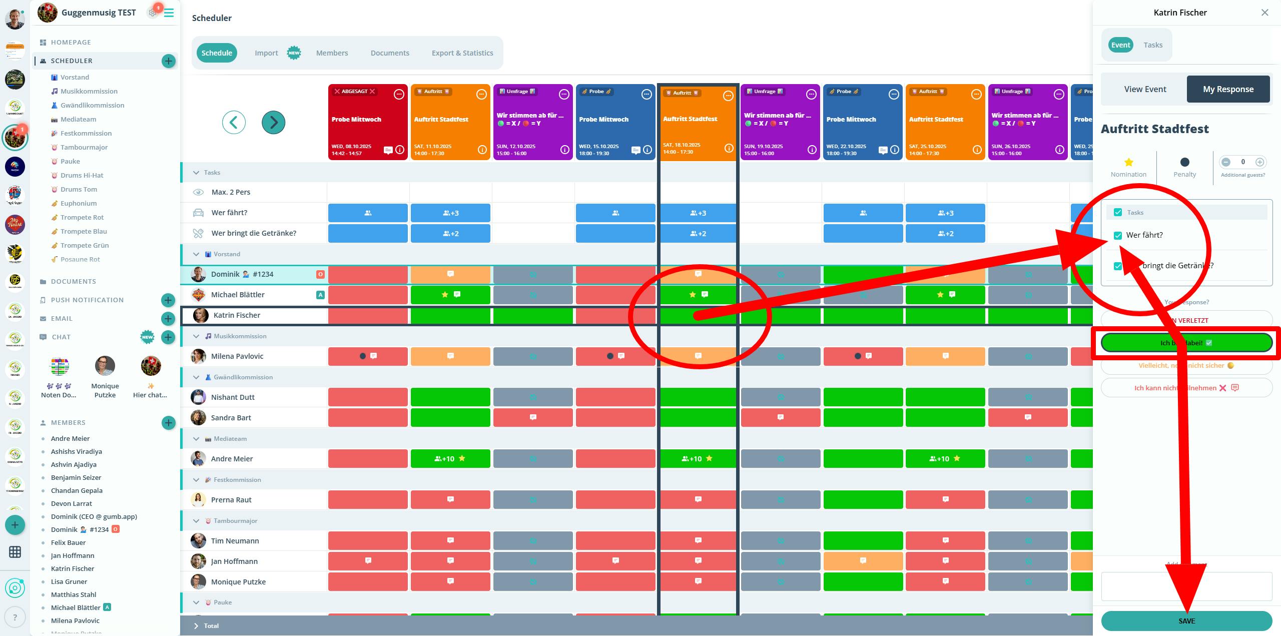 Click on the member’s response (e.g., “Yes, I’m coming”).